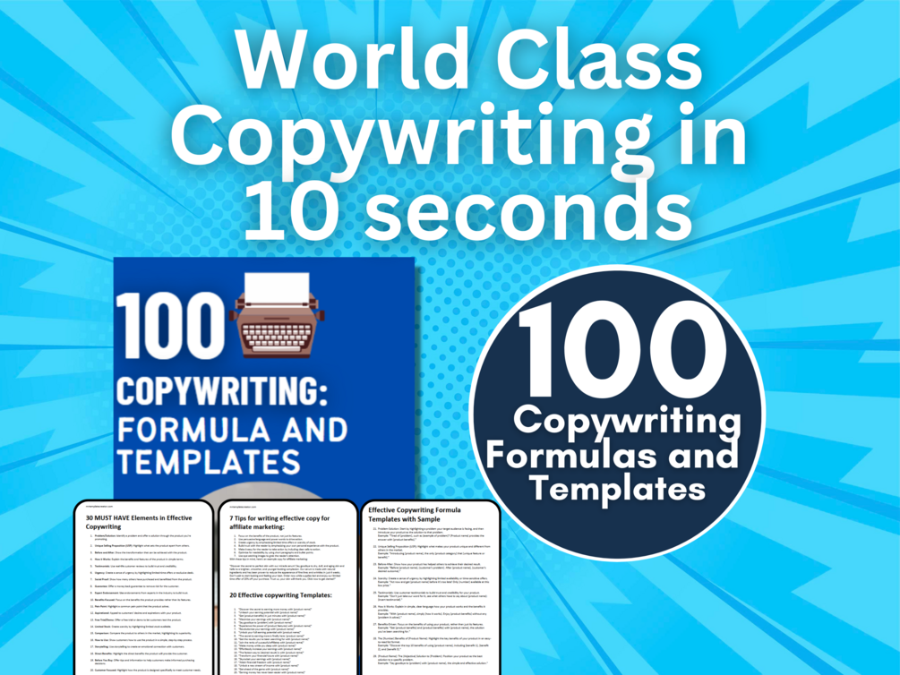 [EDITABLE] WorldClass Copywriting in 10 seconds - 100 Copywriting Formulas And Template | Done for You Template | Just Fill In The Blanks